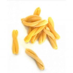 Sacchetto di pasta da 500g di strozzapreti di semola di grano duro. Provenienti da "LA TERRA E IL CIELO", cooperativa storica produttrice di pasta biologica nelle Marche, che ha definitivamente chiuso i battenti. Campagna solidale promossa da Ciurma.