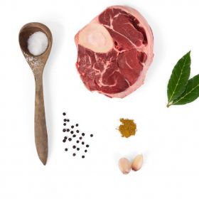 Lo stinco di manzo deriva dai quarti posteriori del bovino e solitamente, tagliato a fette, viene proposto come "ossibuchi".