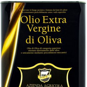 Latta di olio extravergine di oliva da 5 litri. L'olio extravergine di oliva Ogliarola è la varietà più diffusa in Irpinia, specie autoctona e antichissima della penisola salentina. Una varietà molto apprezzata per le caratteristiche organolettiche dell'olio, il quale è ottenuto da olive raccolte appena invaiate (inizio della maturazione del frutto) ed immediatamente frante per garantire la massima freschezza del prodotto.