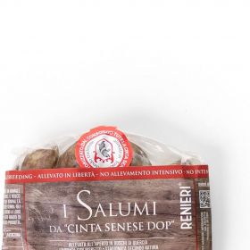 Salamino di Cinta Senese, da 350 g, tipico salame toscano all'aglio.