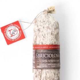 Sbriciolona di Cinta Senese, da 350 g, tipico salame toscano al finocchio.