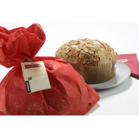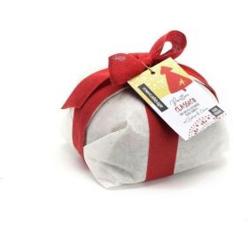 Il classico impasto del panettone lievitato naturalmente è preparato con ingredienti genuini come uova e burro e viene arricchito da squisite gocce di cioccolato e infine decorato con raffinata glassa al cacao e croccante granella di zucchero