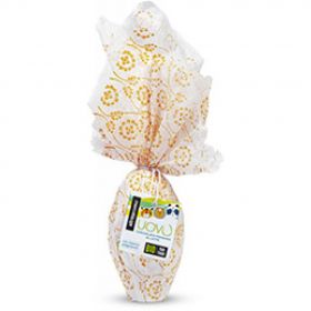 Uovo di pasqua cioccolato fondente con fave di cacao 350 g BIO, confezione in carta seta artigianale