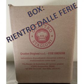Rientrare dalle ferie è sempre difficile ma può essere più dolce e gustoso riempendo la dispensa con la box "rientro dalle ferie" composta da 8 specialità Quattro Stagioni: 1 strudel, 1 fichi secchi, 1 albicocca, 1 hummus, 1 crema di funghi, 3 triti.