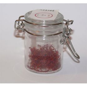 Barattolino di vetro con 1 grammo di zafferano essiccato in stimmi sufficiente per aromatizzare circa 40 porzioni