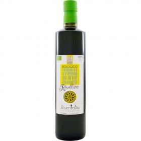 Olio EVO Bio ottenuto da spremitura a freddo di olive dell'antica varietà Canino, prodotte solo nella nostra azienda. Colore: verde smeraldo appena prodotto, poi riflessi dorati con il tempo. Profumo: di frutto appena raccolto, erbe fresche, carciofi. Gusto: Netto, poco untuoso, sapore gradevole; in entrata si apprezza una nota dolce di mandorla verde e frutta matura e poi di carciofo. Infine nella gola si può apprezzare il leggero piccante dei polifenoli. Acidità : 0,1-0,3% Perossidi: 4-6