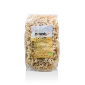 Sacchetto di pasta da 500g di fusilli integrali di grano duro.