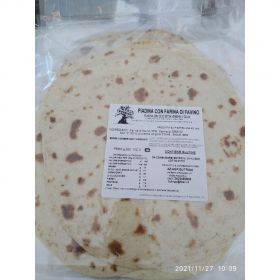 Confezione da 3 pezzi di piadine a base di olio evo e farina di grani antichi e favino decorticato.