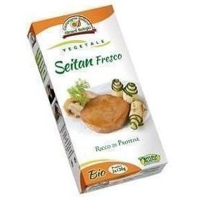 Prodotto base da cucinare in padella, negli spezzatini, tonnato, nel ragù. Può essere usato in tutte quelle ricette per hamburger di carni. Consigliamo sempre di tagliare in due fette il Seitan Fresco, per meglio insaporirlo nelle varie preparazioni, poi accompagnarlo con contorni di verdure cotte o crude. Peso: 240g Ingredienti:Farina di frumento* (glutine* 15%), acqua, salsa di soia* (acqua, fagioli di soja*, grano integrale*, sale marino, zenzero* *Ingredienti da agricoltura biologica.Agricoltura Bio Agricoltura Biologica