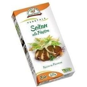 Precotto alla piastra e condito con salsa di soia, pronto per essere servito tal quale o come ingrediente in diverse ricette. Può essere usato in tutte quelle ricette per hamburger di carni. Consigliamo sempre di tagliare in due fette il Seitan alla Piastra, per meglio insaporirlo nelle varie preparazioni, poi accompagnarlo con contorni di verdure cotte o crude. Peso: 250g Ingredienti:Farina di frumento* (glutine* 15%), acqua, salsa di soia* (acqua, fagioli di soja*, grano integrale*, sale marino), olio di girasole*, zenzero* *Ingredienti da agricoltura biologica.
