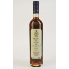 Il nostro Vin Santo MAESTA' DEL BAGNO è il prodotto di poche rigorose regole e di semplici ingredienti: uva “scelta” Trebbiano con l’aggiunta di Malvasia nella debita proporzione, stesa su “cannicci” e fatta appassire fino a dopo Natale, “pigiata” e murata in caratelli di piccole dimensioni a maturare con la preziosa “madre”. Dopo quattro anni di invecchiamento al naturale andamento delle stagioni, il vero Vin Santo Toscano viene scaratellato ricavandone appena la metà della quantità del mosto originario; e senza nessun trattamento, viene imbottigliato.