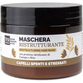 Le proteine idrolizzate dei Semi di Canapa e del Riso contenute in formula rendono la maschera Teanatura l'alternativa vegetale alla cheratina, poichè hanno un effetto ristrutturante e migliorano l'elasticità dei capelli.