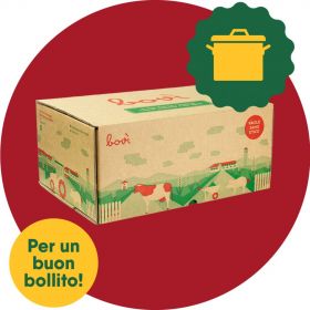 Bollito Box di tagli di carne 100% italiana assortiti in confezione risparmio da 3 Kg o 4 Kg perfetti per preparare un ottimo Bollito misto di carne, gustoso piatto tipico invernale nella nostra campagna, in versione leggermente ridotta rispetto al celebre Bollito piemontese, ma sempre presente sulle tavole delle feste natalizie.