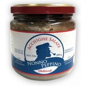 Acciughe pescate nel mare di Sicilia con reti da circuizione e lavorate artigianalmente con sale marino integrale.
