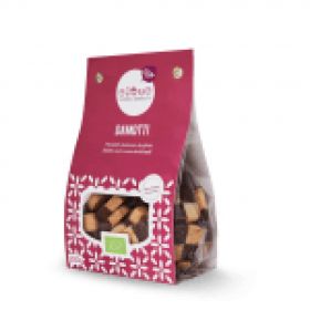 Farina di grano tenero tipo 0, *burro 25%, **zucchero di canna, *uovo pastorizzato, **polvere di cacao amaro 2% (cacao magro, correttore di acidità: carbonato di potassio), *latte intero, sale. *Prodotto biologico **Prodotto biologico e da commercio equo e solidale.