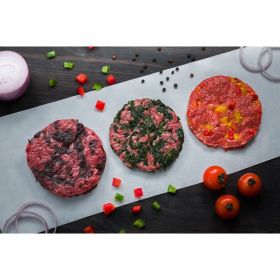 Grande classico per un pasto veloce e gustoso, i nostri hamburger 100% manzo sono la soluzione ideale per ogni evenienza. Ripieno a scelta tra: zucchine, cipollotto caramellato, coste spadellate.