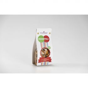 Ingredienti: Farina di GRANO tenero tipo 1 varietà Maiorca, Farina di GRANO tenero tipo 1 varietà Mediterranea, Olio di Colza, UOVA, BURRO, Acqua, Doppio Concentrato di Pomodoro (Pomodoro, Sale) 4,4%, Caciocavallo (LATTE, Sale, Caglio), Zucchero di Canna, Olio Extra Vergine d’Oliva, Basilico, Pepe Nero, Sale, Agente Lievitante (Amido di mais biologico, Tartrato di potassio estratto dalle uve, Bicarbonato di sodio), Origano. Può contenere tracce di: Sedano, Soia, Frutta a Guscio, Sesamo, Arachidi