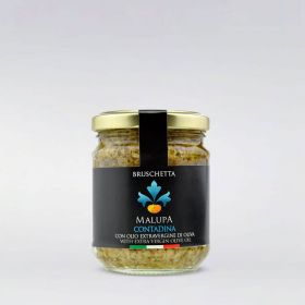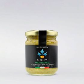 La BRUSCHETTA MEDITERRANEA fatta di olive, capperi e mandorle è pronta per essere consumata su bruschette, tramezzini, piadine, tartine, oltre che per accompagnare insalate, carne e pesce.