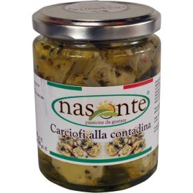 INGREDIENTI : CUORI DI CARCIOFI DI SICILIA TAGLIATI A METTA , OLIO DI SEMI DI GIRASOLE , OLIO EXTRA VERGINE DI OLIVA, PREZZEMOLO, MENTA, AGLIO, PEPERONCINO FRANTUMATO , ACETO DI VINO BIANCO E SALE.