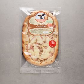 Farina di grano tenero biologica tipo 0, farina di grani antichi biologica tipo 2, acqua, lievito madre biologico, mozzarella (KM0), funghi, Prosciutto Cotto, olio extravergine di oliva, sale.
