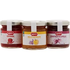 Le composte in genere sono ideali per degli abbinamenti con formaggi di varia stagionatura e natura, a seconda del tipo di composta che si utilizza. Consigliamo il loro utilizzo per antipasti, aperitivi o per un semplice breack. I fichi sembrano essere il frutto perfetto per l’abbinamento con formaggi, motivo per cui proponiamo questa composta e poi la versione del fico glassato, da utilizzarsi a fettine col formaggio. - La nostra azienda fa parte del consorzio della cipolla di Tropea IGP, motivo per cui la filiera è cortissima e la qualità della materia prima è sempre eccellente. - La nostra azienda nasce in un territorio dove lo zafferano è il prodotto più prestigioso e pregiato ed è per questo che con orgoglio abbiamo voluto creare un prodotto che meglio rendesse omaggio a questa spezia. Mela e zafferano, un connubio perfetto di sapori che genera un prodotto delicato ma allo stesso tempo carico di aroma.