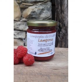 Composta di lampone senza zucchero ma si utilizza sciroppo d'uva, in vasetti da 230 gr