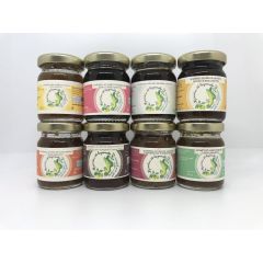 8 vasetti da 60 grammi fra marmellate bio e composte bio a vostra scelta ma secondo disponibilità per quanto riguarda l'assortimento, dopo l'acquisto comunicate a info@ilgiardinodelbergamotto.it le vostre preferenze