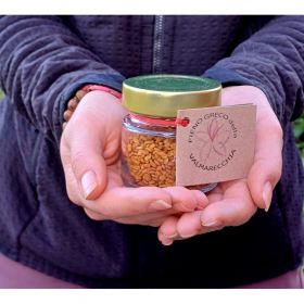 Semi di Fieno Greco (spezia ayurvedica, principale ingrediente del curry indiano), coltivati e raccolti nel 2024 a Sant'Agata Feltria con metodo biologico.
