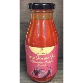 Seasoning ready to paste, just heat. It does not require cooking. After opening, store in frigo.quando you want to spice up a day like any other you have to eat ready cherry sauce with organic pepper (ingredients: Cherry Tomato (95% min.), Extra virgin olive oil, pepper, salt , basil)