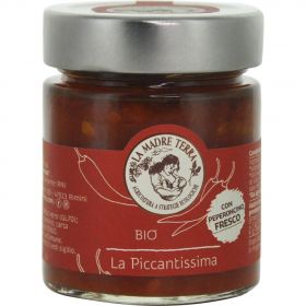 Peperoncino rosso 30%, passata di pomodoro 30%, olio e.v. d’oliva, cipolla 25%, zucchero di canna, aceto agro di vino bianco, sale marino,aglio,coriandolo.