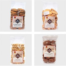 SCATOLA CONTENETE 4 SACCHETTI BISCOTTI DA COLAZIONE (Caserecci - Morbidoni al Cacao - Ciambelline - Ferratelle)