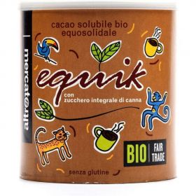 Equik è un cacao solubile ottenuto unicamente da ingredienti biologici: ben il 30% di cacao magro e dolcificato con solo zucchero di canna integrale. Un concentrato eccellente di energia, pronto da sciogliere nel latte, ottimo a colazione o per una merenda golosa. Confezionato in un barattolo smaltibile nella carta.