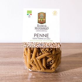 Penne di Ceci fatte con il 100% di farina di ceci BIO e acqua di montagna. Certificata biologica e senza glutine, rispetta i più elevati standard di qualità, rendendola adatta non solo ai celiaci, ma anche a vegani e vegetariani. Confezionate con ingredienti biologici e amore, rappresentano l’impegno per un’alimentazione consapevole e sostenibile