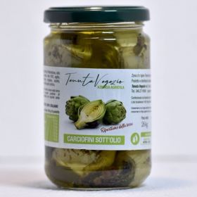 I Carciofini sott'olio fanno parte delle conserve della tradizione siciliana. Nel periodo primaverile, una volta giunti a maturazione, i nostri carciofini vengono raccolti, selezionati, puliti e tagliati. Successivamente i carciofini vengono bolliti, asciugati e conditi con olio extravergine di oliva, aglio e origano per essere conservati anche durante i mesi successivi. I Carciofini sott'olio sono ottimi da gustare insieme a del pane casereccio, e sono ideali come antipasto, o per accompagnare sfiziosi aperitivi insieme ai nostri salumi e formaggi. Provare per credere.