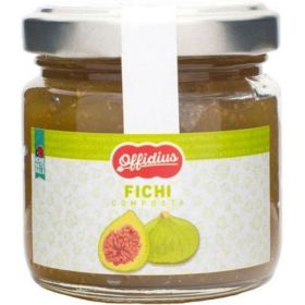 Confettura ottenuta con fichi freschi di stagione, raccolati a giusta maturazione. La varietà è tipica dell' areale sud della Basilicata. La cottura avviene a bassa temperatura e la lavorazione è interamente artigianale. La confettura di fichi è ottima per deguatarla con formaggi stagionati.