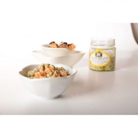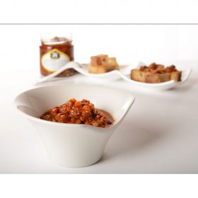 Ideale per la praticità d’impiego, nella preparazione di primi piatti (penne ed altri formati di pasta). Basta sciogliere, in olio di oliva bollente, la Bombona, e saltare in padella la pasta scolata al dente; a piacere, come tocco finale, una spolverata di parmigiano o pecorino.