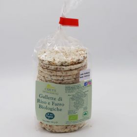Gallette di farro biologico, lavorate a chicco intero, in confezione da 120 g.