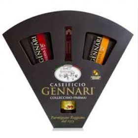 Scatola degustazione Spicchio, un'elegante scatola regalo dove all'interno troverete 2 differenti stagionature del nostro Parmigiano Reggiano, 24 – 36 mesi in formato 300 gr cad, accompagnate da una marmellata/composta da degustazione 42 gr cad. e da un condimento balsamico 40 travasi.