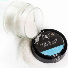 Il Fior di Sale è una tipologia di sale molto pregiato, esso si cristallizza tramite l’evaporazione dell’acqua madre all’interno delle vasche salanti. A differenza del sale esso si forma sulla superficie dell'acqua e non sul fondo. La sua composizione naturale lo rende molto leggero e gli permette di galleggiare. Il Fior di Sale Riserva del Mare viene raccolto da esperti salinai, utilizzando appositi retini nelle prime ore del mattino in assenza di vento, per evitarne la precipitazione sul fondo della vasca. Il suo spessore è di soli 3 millimetri. Pertanto durante la raccolta che si tiene nel mese di luglio, la produzione è molto limitata. Esso viene asciugato naturalmente per mantenere le proprietà inalterate, quali: iodio, magnesio ed altri oligoelementi essenziali per l’organismo umano. Il fior di sale è considerato un bene prezioso molto raro, ha un sapore delicato che non lascia il retrogusto amaro, pertanto è principalmente utilizzato nelle cucine gourmet. Il Fior di Sale mantiene invariate le sue proprietà grazie al suo speciale processo di lavorazione, per tale motivo è possibile utilizzarne molto meno in cucina in quanto ha una salinità molto alta rispetto al sale raffinato.