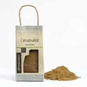 Dai giardini di spezie dello Sri Lanka È una pianta delicata, che profuma di agrumi, pungente e dolce, il coriandolo Altromercato viene macinato a partire dai semi essiccati. La confezione è realizzata artigianalmente in carta fatta a mano a partire da fibre naturali. Abbinamenti: insieme ad aglio, peperoncino, chiodo di garofano e cumino, si adatta perfettamente a piatti di carne e zuppe di verdura e dà vivacità ai piatti di pesce