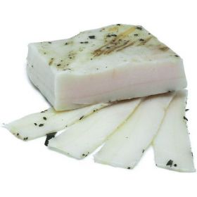Il Lardo è lo strato grasso della schiena del maiale salato e aromatizzato con rosmarino, salvia, alloro e pepe in grani.