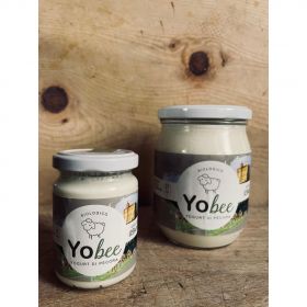 Yo bee è uno yogurt intero fatto con il latte appena munto, non omogenizzato per seguire una scheda nutrizionale, ma semplice come il latte è in giornata a seconda di quello che le pecore pascolano.