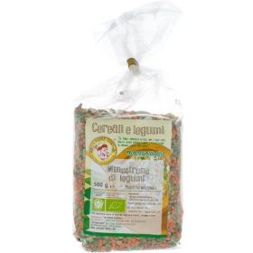 Lenticchie rosse decorticate 25%, piselli spezzati 20%, lenticchie verdi 20%, ceci 10%, borlotti 15%, fagioli cannellini 10%.