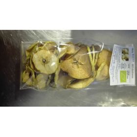 Mele biologiche di razze antiche di propria produzione disidratate nel laboratorio interno all' azienda certificato BIO secondo un processo basato sul freddo. Il prodotto viene confezionato nello stesso laboratorio e ha la certificazione BIO. La confezione da 50g è quella standard minima, ma è possibile richiedere confezioni di altre dimensioni tipo 100g