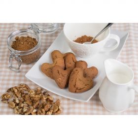 Farina di farro integrale, Uova, Zucchero integrale di canna Mascobado, Olio extravergine di oliva, Noci, Lievito (amido di mais, tartrato di potassio estratto dalle uve, bicarbonato di sodio), Sale marino integrale
