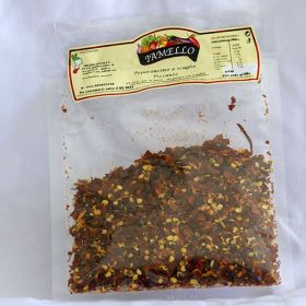 Usiamo peperoncino siciliano locale perché è meno piccante del peperoncino coltivato in altre parti del sud Italia (Calabria). Grazie ad uno speciale processo di fabbricazione mantiene il suo bel colore rosso.