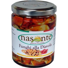 INGREDIENTI :FUNGHI CHAMPIGNON AFFETTATI ,"AGARICUS BISPORUS " 62 % , PEPERONCINO MACINATO FORTE 8 % OLIO DI SEMI DI GIRASOLE,OLIO EXTRA VERGINE DI OLIVA, PEPERONCINO FRANTUMATO, AGLIO, PREZZEMOLO, ACETO DI VINO BIANCO E SALE.