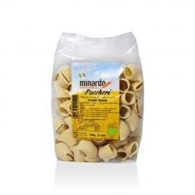 Paccheri di grano senaotre cappelli biologico autoprodotto con 25% di canapa biologica. valido sostituto della carne, alimento completo e bilanciato. 1 conf da 500 grammi 8 porzioni. Pasta artigianale e biologica Grano autoprodotto da Societa Agricola A.r.t.e. srl Prodotta utilizzando solo fonti rinnovabili 25% di farina di Canapa biologica italiana Trafilatura al bronzo e lenta essicazione Alto contenuto di Proteine, Fibre e Vitamine Basso contenuto di Glutine Ricca di Omega-3 e Omega-6 nel giusto rapporto Differenziale peso crudo/cotto pari al 200% 6/7 porzioni ogni 500g Ottima tenuta in cottura