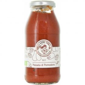 La Passata di Pomodoro è ottenuta dal pomodoro passato e concentrato del tipo tondo, proveniente da Agricoltura Biologica, triturato, raffinato e concentrato. Le coltivazioni in provincia di Cremona sono particolarmente favorite dalle caratteristiche dei terreni agricoli e dal clima. Dopo il raccolto effettuato a macchina, i pomodori vengono trasformati a crudo senza l’aggiunta di zuccheri.