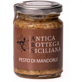 Il pesto di mandorle siciliane è il condimento ideale per un piatto di pasta che esprima i sapori e i profumi della Sicilia. 1. Ingredienti: Mandorle siciliane, olio extra-vergine di oliva, sale. 2. Origine Mandorle: Sicilia (Italia) 3. Lavorazione: Le mandorle sgusciate, rigorosamente di origine siciliana, vengono tritate con un apposito macchinario. Il composto, dopo l'aggiunta dell’olio extravergine di oliva e del sale, viene confezionato. 4. Peso netto: 180 grammi